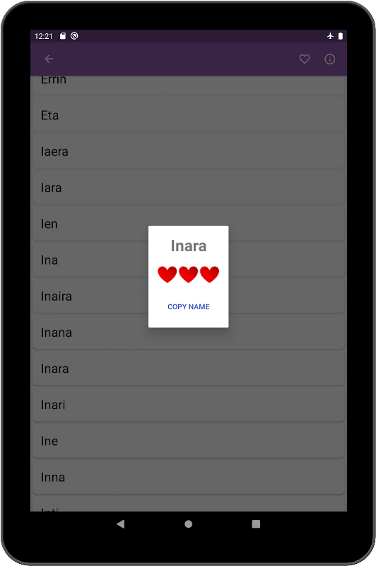 The application will generate the possible baby names from a file with more than 20,000 male and female names. All these names are given in recent years to Dutch children. Hopefully you will find a nice name for your baby.