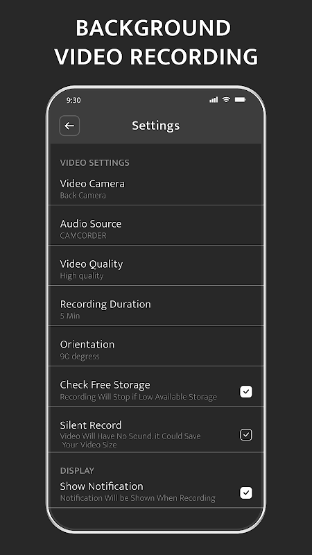- Background Video Recording: Record videos seamlessly in the background, even when your device is locked or while using other apps.