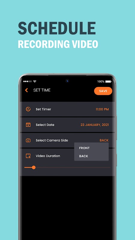 Background Video Recorder app is a Personal camera app that can record video/voice in the background automatic. It helps you to record video by one click easily with the option to enable/disable camera shutter sounds and camera previews. It can continue record video and voice even screen is off and you can scheduled recording on the settings page.