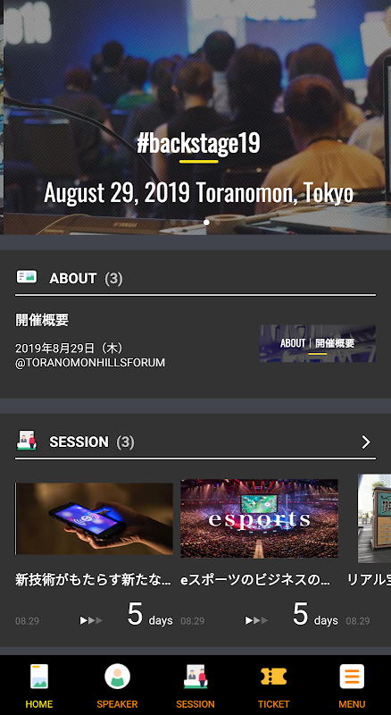 The official app for BACKSTAGE 2019 visitors to be held at Toranomon Hills Forum on August 29, 2019.