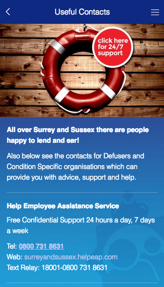 The App covers a range of problems faced by officers and staff in the Police service, such as anxiety, stress, PTSD (Post Traumatic Stress Disorder), depression, eating disorders, self harm and more. It gives practical advice and support on how officers can maintain good mental health, spot warning signs for themselves and others, plus advice on how to get help for themselves and colleagues.