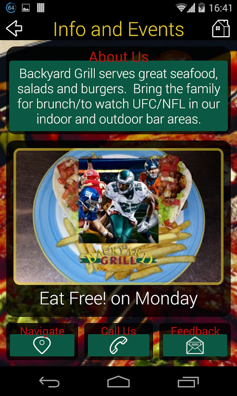 sports events and great food? It’s finally here! Don’t be left out. Download the Backyard Grill App now.