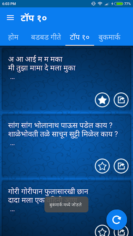 Badbad geete in Marathi is a comprehensive app which lists hundreds of Badbad geete in one single app.