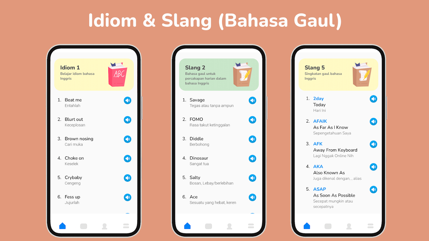 With this English application you no longer need to spend time and expensive fees to take an English course and can be used at home.