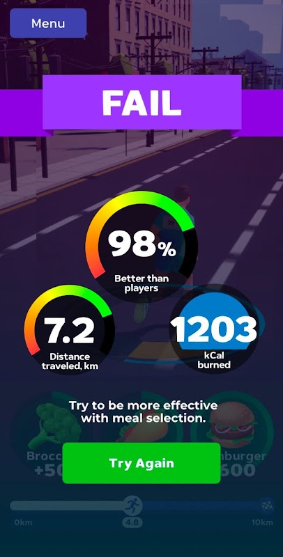 In Balanced Run, the player's objective is to assist the athlete in completing a specific distance, utilizing the knowledge of nutrition and energy consumption. By providing the athlete with different food items, players can replenish the runner's energy and propel them forward. However, caution must be exercised when it comes to high-calorie food items, as they can oversaturate the athlete's energy reserves.