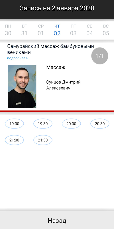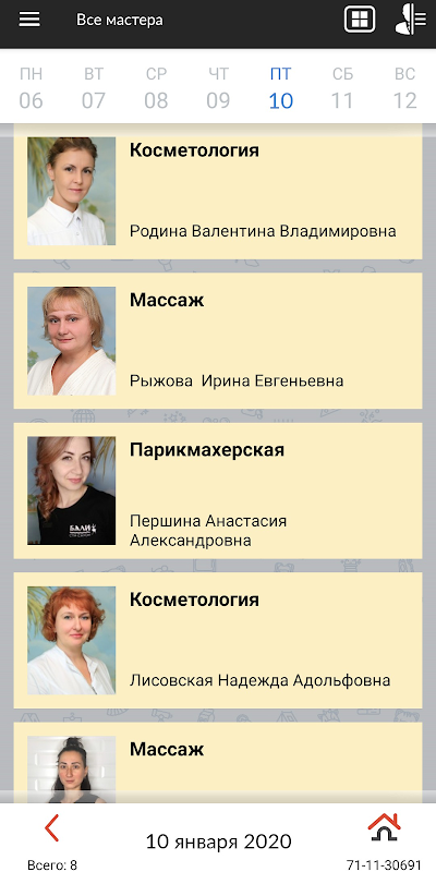 Приложение показывает свободное время (расписания) в системе СПА-салонов Bali с возможностью регистрации и записи на процедуру, услугу или к мастеру.