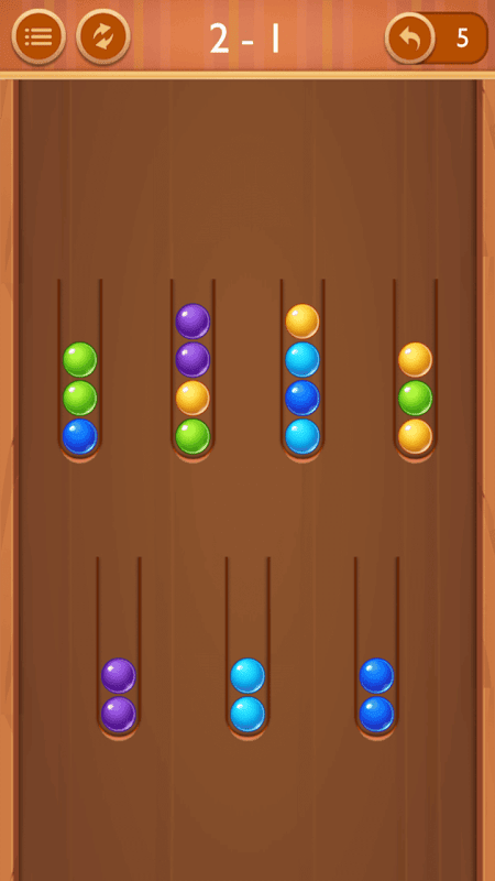 • Tap any tube to move the ball lie on top in the tube to another tube.