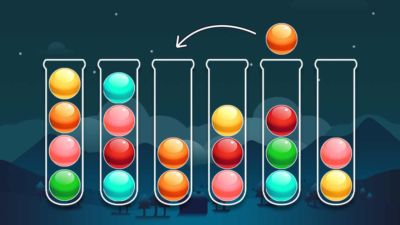 - Tap any tube to move the ball lying on top into another tube.