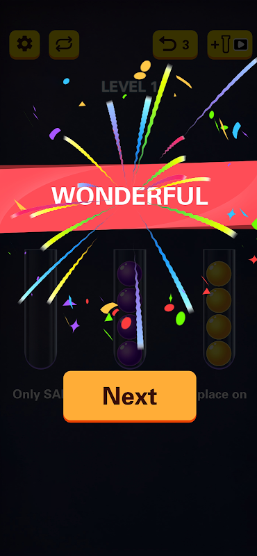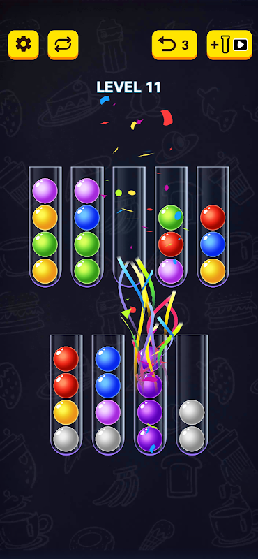 Solve the game by sorting colorful balls. Enjoy the mental challenge as you solve the same color balls into a tube.