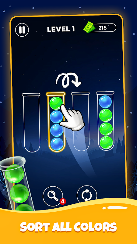 ➔ You win when all the balls of the same color are sorted into one bottle!