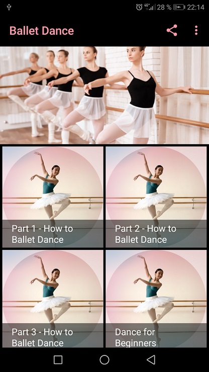 Dans cette app, vous trouverez plusieurs thèmes concernant la danse du ballet, comme par exemple: