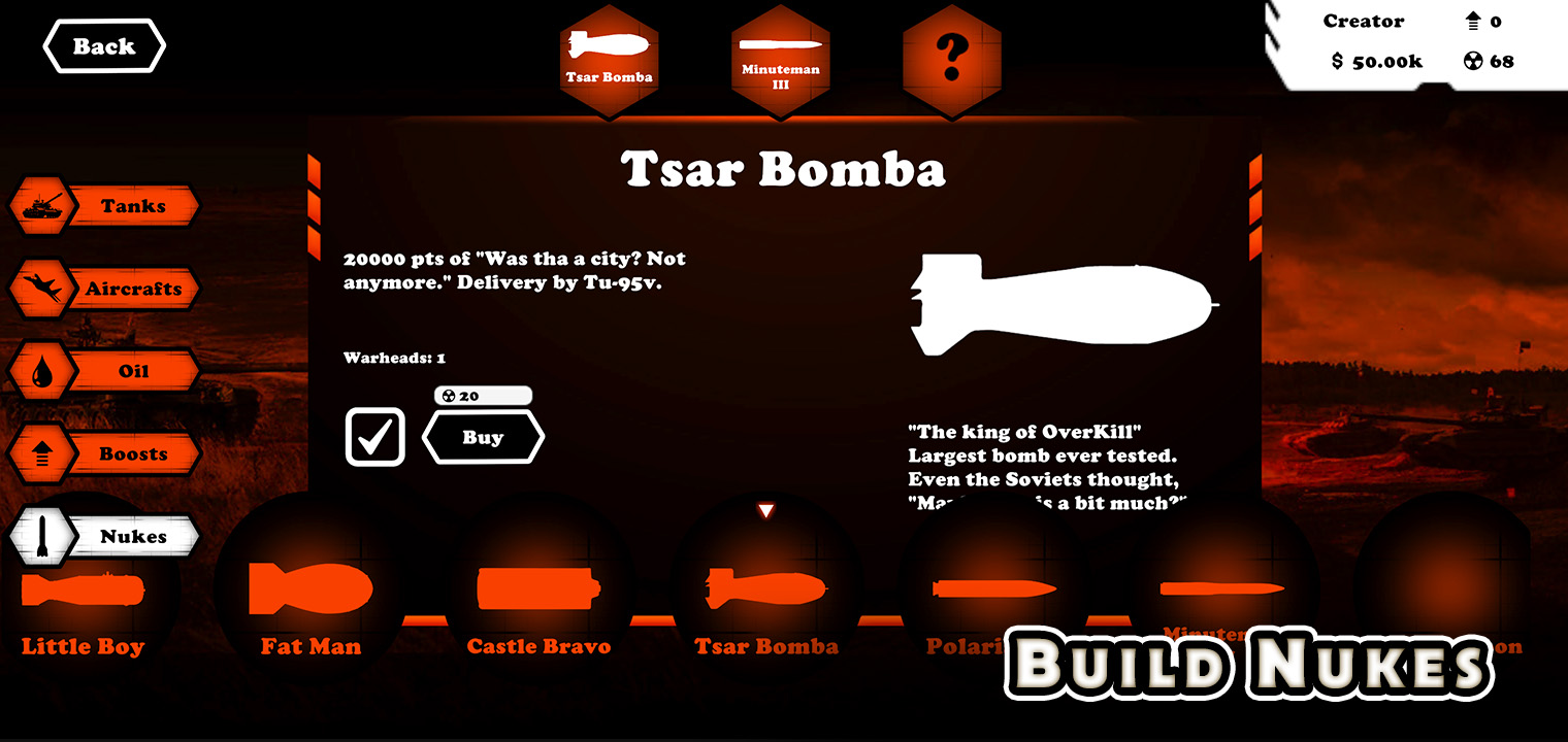 • NUCLEAR TRIAD POWER – Launch nukes from land, air, or sea