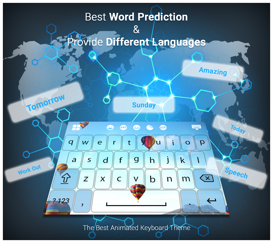 Balloon Keyboard Theme with animation and Live keyboard graphic effects that comes with faster, smoother and accurate typing experience.