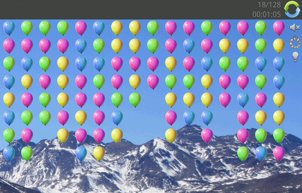 "Balloon Pop" is a challenging puzzle where you have to blow up all the balloons of the screen. You win when you have exploded everything ! This is a free game.