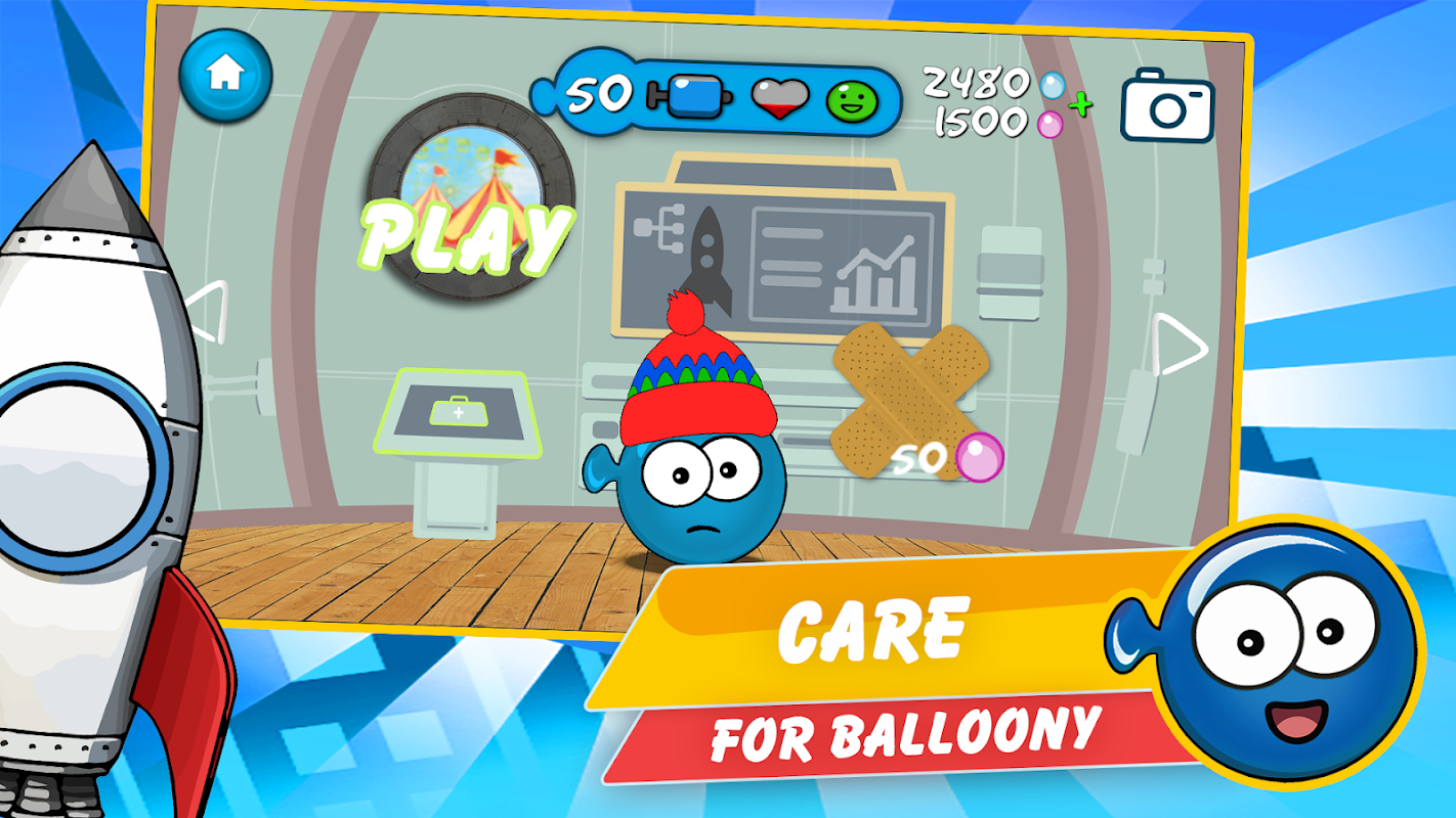 Inside the rocket you have to pump up and take care of Balloony once in a while. Personalize your Balloony by choosing different colors and stylish clothing. Over 60 accessories are available with more and more arriving in regular updates - this makes for endless personalization options!