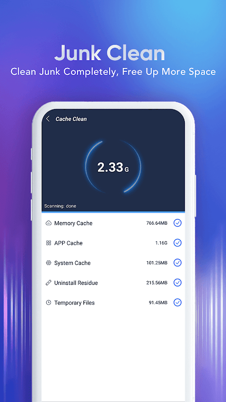 Powerful Cleaner — junk files , app caches, ad caches and system caches all in one, free up several useless files in social apps.