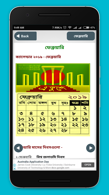 This calendar apps is a calendar 2019 english app which provides gorgeous interface & it also be a kon din ki dibosh calendar. You will get all calendar information about upcoming calendar 2019 & also this calendar free app give the (kon din kon dibos) special days information which necessary in our daily life.