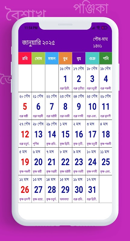 2026 বাংলা ক্যালেন্ডার পঞ্জিকা 2026 bengali calendar is a offline calendar and 2026 calendar app for bengali speaking people across the globe. Bengali calendar apps is highly useful to know festivals, holidays, Shubh Muhurat & bengali panji 2026 information