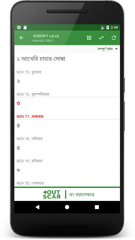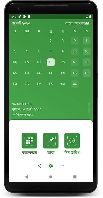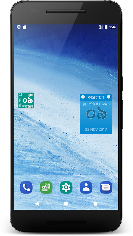 This Bangla Calendar comes with a nice widget for your home screen. The widget covers, Day of Week, Bengali Month name and current Bengali year along with the Gregorian calendar details.