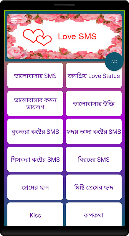 In this app all types 50000 of Bangla SMS that you can read and share with your friends. There are also love & sad SMS included in this app.