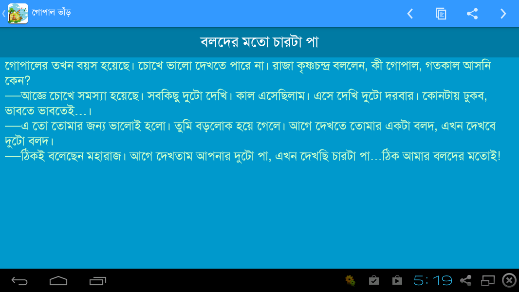 Bangla Kids Story. Simple and Lightweight like most of all my apps. You can read Bengali kid’s tales and stories and share those with your friends through facebook and other social network.