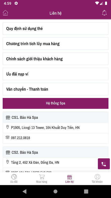 Customer care application, service management Bao Ha Spa