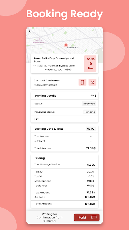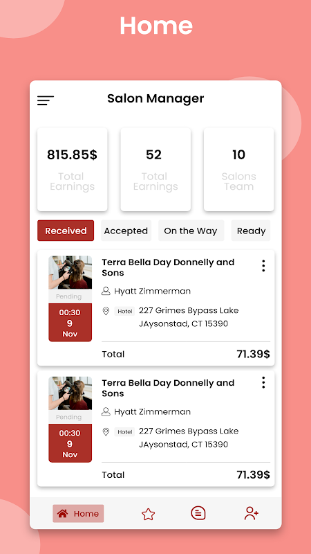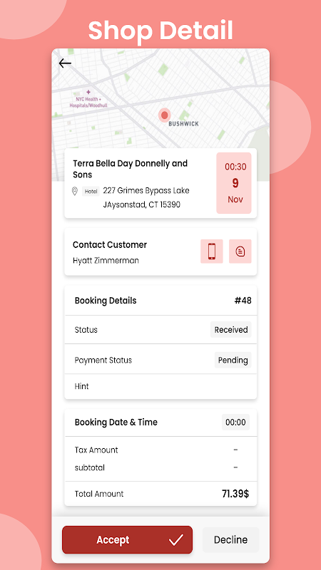 The barber owner can check the status of a booking by switching the booking tab once a customer has made a service reservation. The booking can also be accepted or rejected by him.