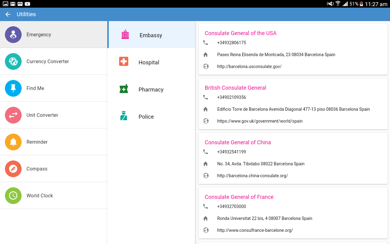 • Travel utilities like hotel booking, currency converter, weather forecast, world clocks, reminder, alarm and many more available within the app.