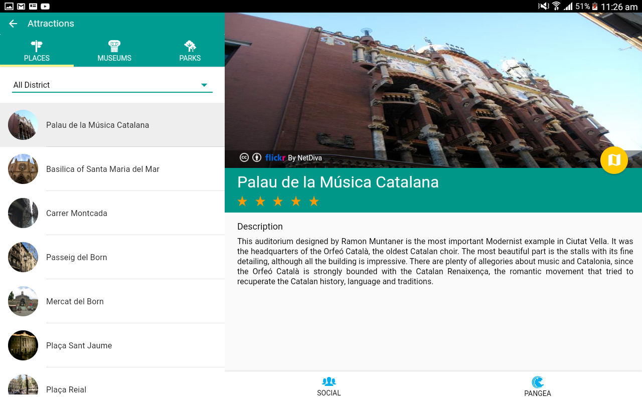 With detailed information of around 20 museums and 50 featured attractions along with 1000s of other Points of Interest carefully integrated with every single travel activity, Barcelona Travel - Pangea Guides is power packed with utilities and information. From Facebook Check-Ins to local event information, offline map to intuitive Augmented Reality experience, we have brought most of the travel activities and application needs to one single app. Save precious travel time rather than switching between several apps and utilities!