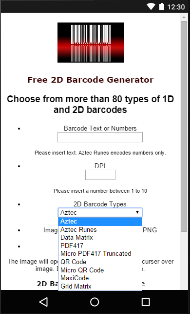 Generate FREE barcode images in over 80 popular 1D and 2D barcode formats.