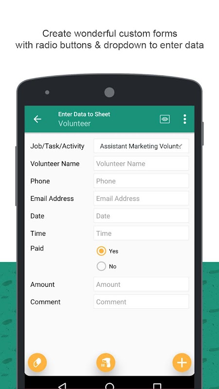 Custom Rows and Columns: The aim of the application is to make the data entry easier. Adding rows and columns in the custom form is as simple as it is done in CSV or Excel sheet. The data can be entered manually or can be done automatically by just press the scanner icon to scan and enter the data in the form.