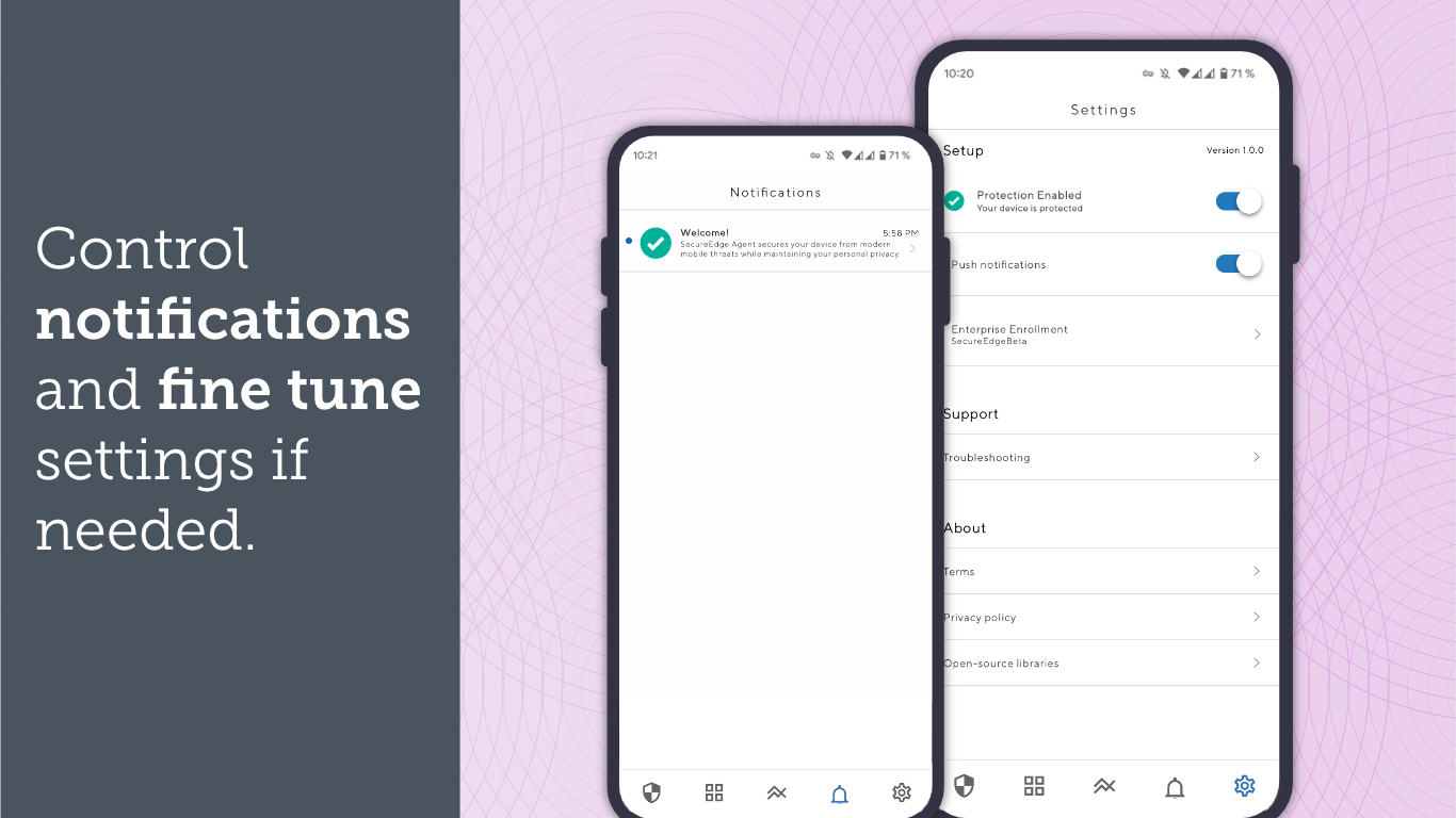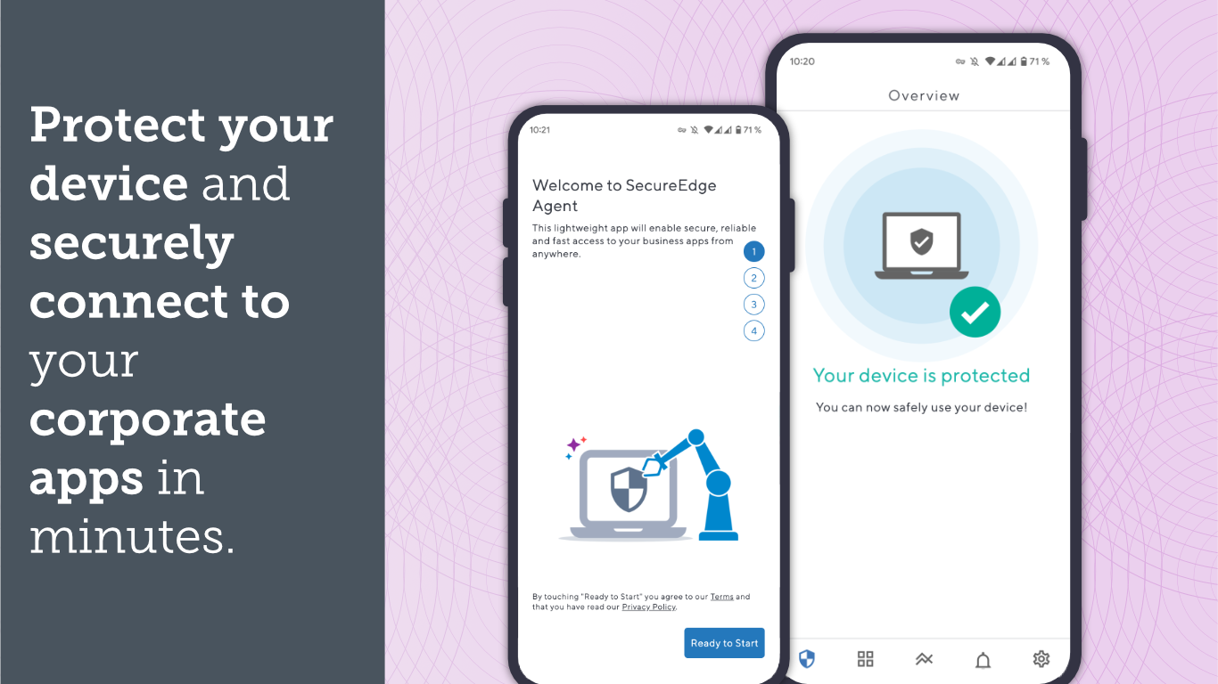 The application uses the VpnService API to establish a secure connection to Edge devices in order to be able to access protected resources.