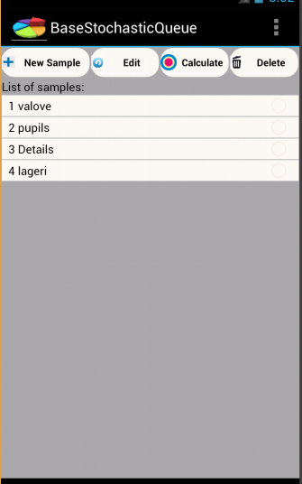 BaseStochasticQueue application model work single-channel queue system for mass service. Allows the waiting and service time to be stored and processed as samples of random variables. Along with this application allows you to enter and process samples of random variables. The app has a calculator component known statistical distributions.