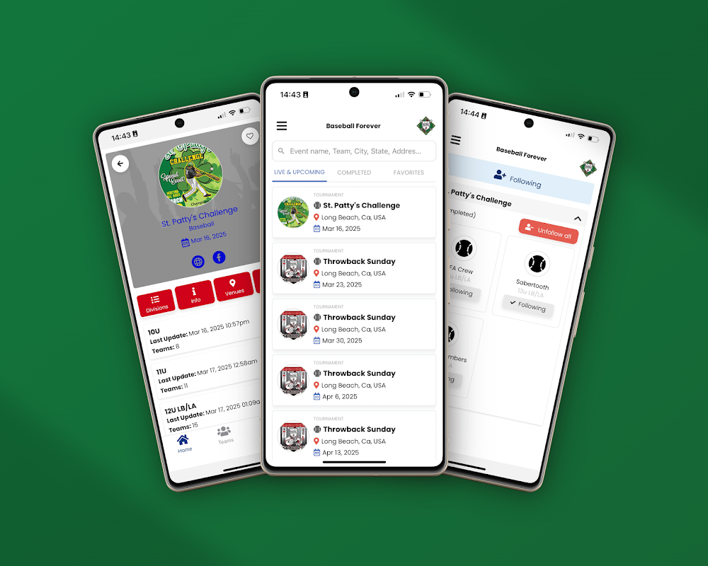 Baseball Forever app gives coaches, parents and fans real time tournament information.