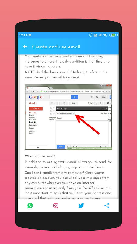 Basic Computer Knowledge Free application, you learn basic elements to use the computer, as well as the basic knowledge to navigate the Internet, use email, social networks and understand basic concepts of computer.