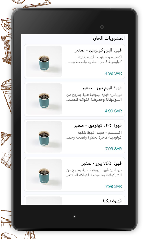 • Hot drinks: such as today’s coffee, V60, and any Turkish coffee you like.