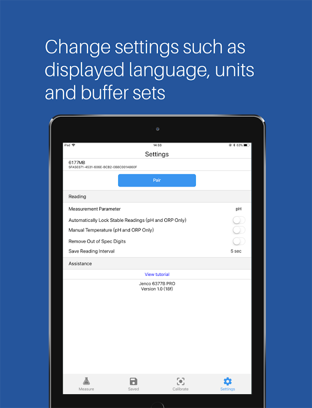 Our 5th generation benchtop series consists of single and multi-parameter models, with or without Bluetooth connectivity. The 6177MB / 6177BEU is a single parameter pH / ORP / temperature Bluetooth benchtop meter that pairs with iOS tablet to enable the same user experience as users’ favorite apps while providing graphing, guided calibration procedures, GLP-compliant data storage, data sharing, cloud data storage and user-defined compliance policies.