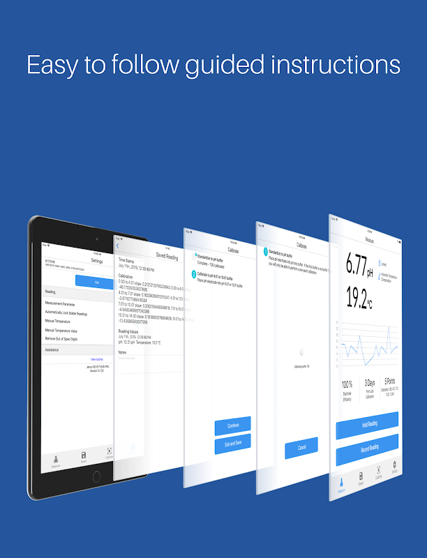 Our 5th generation benchtop series consists of single and multi-parameter models, with or without Bluetooth connectivity. The 6179MB is a multi-parameter pH / ORP / ION Temperature Bluetooth benchtop meter that pairs with iOS tablet to enable the same user experience as users’ favorite apps while providing graphing, guided calibration procedures, GLP-compliant data storage, data sharing, cloud data storage and user-defined compliance policies.