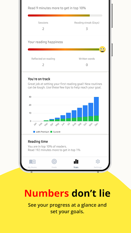 - Get personalized book stats, analytics, and tips on your reading behavior: completed reading sessions, total read pages, average read pages per hour, estimated completion date for a book based on your reading speed, longest reading session, reading streaks, daily graph of time spent reading.