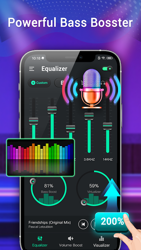 Equalizer & Bass Booster helps to improve all your music and video sound quality with Visualizer, Equalizer, Bass booster, Volume booster and 3D Virtualizer effects.