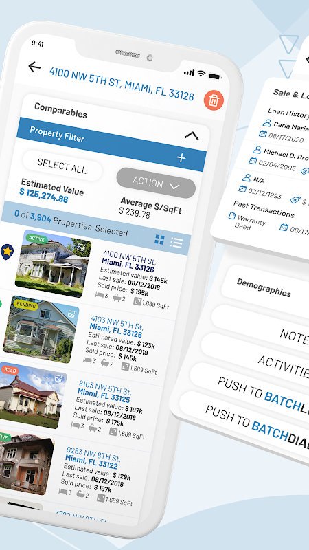 - Look up proprietary owner information on the spot (name, mortgage info, estimated equity, etc.)