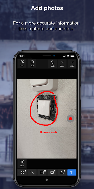 - Collaborative follow-up: exchange information instantly with all site stakeholders (architect, project manager, site manager, owner, electrician, plumber, etc.)