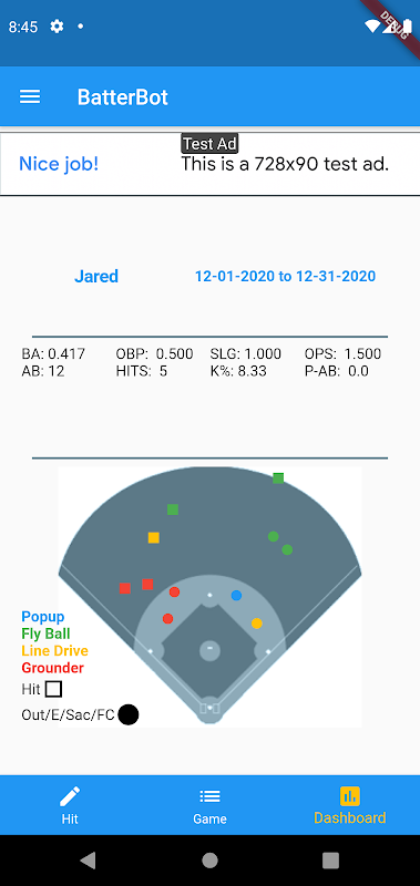 Batterbot tracks batting statistics for baseball or softball players. Capture accurate and complete statistics for all of your players games. Don't miss out on a single game, hit or pitch. Batterbot will assure you have all the data you need to help your hitter measure their performance and the insights to get them playing their best.