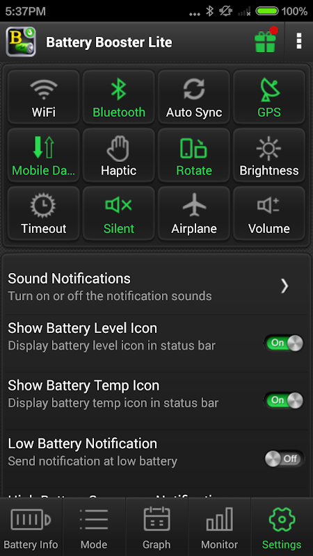 Battery Booster provides real-time battery information, including battery level, battery temp, remaining battery usage time, and so on.