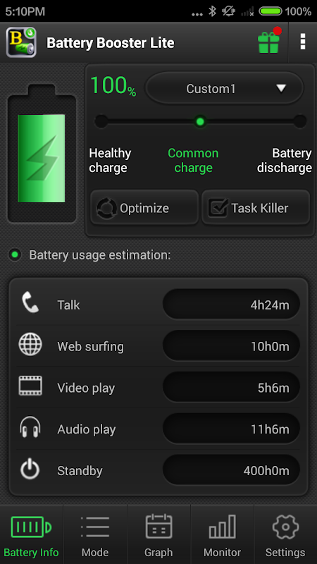 Battery Booster keeps an eye on all running processes, and shows you the battery consumption ratio of each process. With this information, you will easily find out the battery-draining processes, stop or uninstall them to enhance battery life.