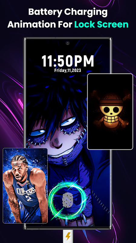 Charging Animation background photo apply app is a fun and interesting method to follow the charging process in many attractive animation effects. New 3D battery charging animation photo Anime and Naruto include lightning bolts that fill up the battery symbol as the device charges. When you connect to your charger, an animated collection of anime, One Piece, and Naruto shows up on your Android device.