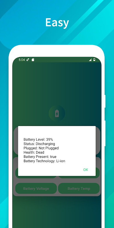 • Battery status checking: Quickly check your device's current battery status, whether it's charging, discharging, or fully charged.