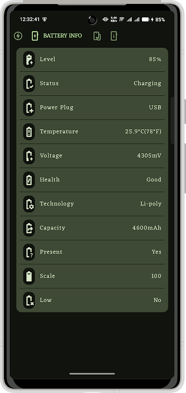 The app offers a simple interface to view battery specifications of your device, without modifying system behavior.
