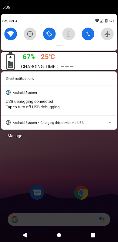 You can also display the battery level, battery temperature, and charging time in the notification area.