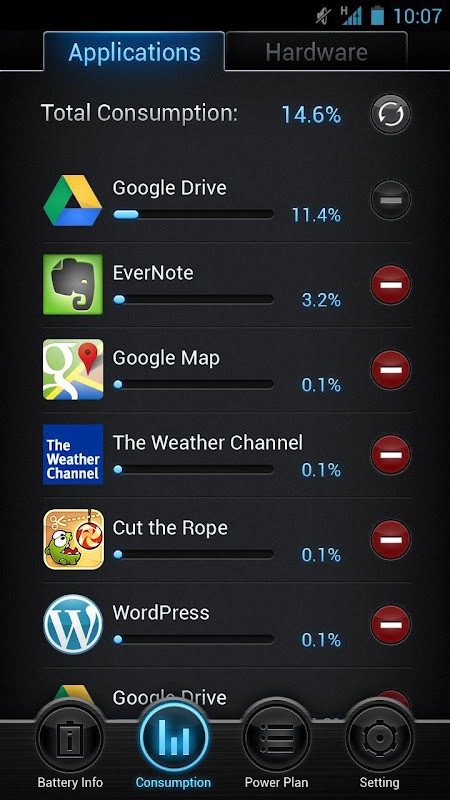 - Show instant power consumption for each app ranking.
